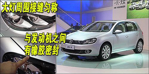 第六代高尔夫已经放弃了大众家族式的“U型前脸”设计。而前脸部分的造型更像是大众“scirocco”跑车的前脸风格。此外,车身高度上6代高尔夫也显得更加低矮,因此整体视觉上更具运动气息。六代高尔夫的前大灯灯罩采用了全新的设计,后圆前尖的造型很是新颖。大灯周边的接缝很均匀,做工非常精细。