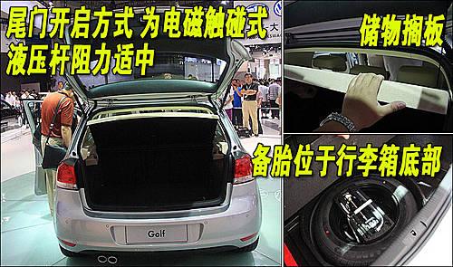 第六代高尔夫尾门开启轻巧,轻触尾门下部的电磁按键即可开启。同时配备双液压支撑杆,保证开启及闭合动作流畅轻松。