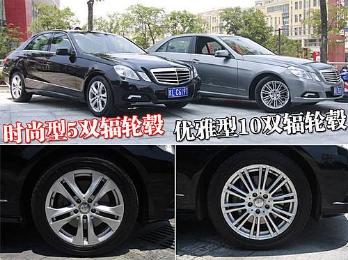 除进气格栅和前保险杠差异外,奔驰新E300优雅型和时尚型外形的主要区别还体现在轮毂样式上。奔驰新E300优雅型配备17寸10双辐轻质合金轮毂,而奔驰新E300时尚型则采用17寸5双辐轻质合金轮毂。