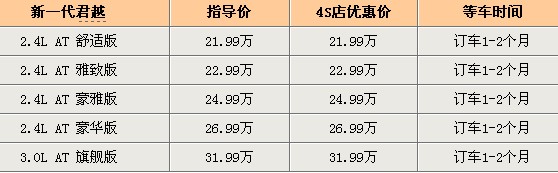 市场解析:新君越的样车已到店,全系车型已经开始接受预订,目前提车时间在1-2个月,具体视颜色情况而定。不过需要预交1万元的订金。从目前产能情况来看,新君越的新车效应至少需要三个月时间才能从销量上体现出来,届还有东风本田的思铂睿、斯柯达昊锐两款重量级新车加入竞争,中高级轿车市场的格局仍然是个迷。