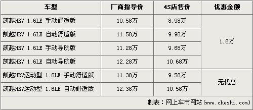 据经销商处销售人员介绍,别克凯越HRV已经停产,店内在售的车型只有舒适版和导航版,运动版车型已经没有库存车。在售的舒适版和导航版车型优惠1.6万元,全系入门级的手动舒适版售价降到了8.98万元。