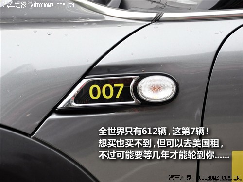 外观上,除了车身多处的电动标示之外,MINI E和普通的MINI cooper S并没有什么区别,侧面转向灯旁边的数字,代表的是这辆车的编号。