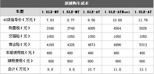 日常用车过程中还会产生一些意外费用和非固定支出费用,如交通违章,汽车修理费用等,这部分不可预知的费用我们暂且定为1000元。那么综合以上的分析可以看出新凯越一年的用车成本在1.8万元到2.2万元之间。
