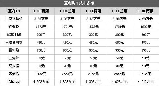 一、购车成本,夏利N31.1排量的两厢和三厢车型在价格方面优势明显,不足4万元的价位,对于资金不充足的用户是个非常不错的选择。同时1.4排量的车型,也是在同排量的车型中,价位相对较低的一款。