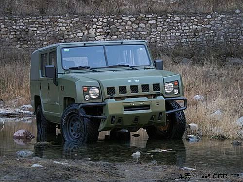 其外形设计的目标原则是强调在继承中发展的思路,实现突破创新和现代感的全新造型;强调具有中国文化底蕴,不与国内、国外车型雷同;在保持传统特色的同时,来强化现代感。其以粗犷、简洁、威武的造型,展现了我军威武之师、现代军队的风貌和现代“硬派”越野车的风格。外形个性鲜明,车身外观紧凑而流畅,前脸造型模仿狼眼外眼角上扬、怒视前方的表情,与前保险杠融为一体的狼牙造型,将野性、威猛的气势演绎得淋漓尽致。篷顶后部稍向下沿伸,恰似豹子起跑前的后坐姿势,突出了整车的动感与强悍。