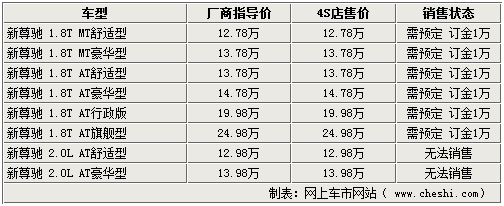 华晨中华旗下的新款中级轿车新尊驰已上市一段时间,网上车市网站由4S店得知,各家店内新尊驰现车不足,需要预订同时没有任何形式的现金及赠品优惠;而在售的老款尊驰车型则可以给出1.9万元的优惠幅度。具体详情如下: