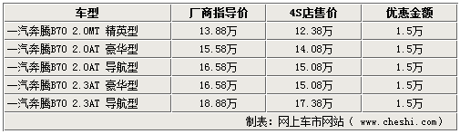 奔腾B70全系优惠1.5万