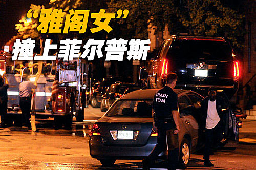 据报道,车祸发生在8月13日大约晚上21时,菲尔普斯驾车载着一男一女两位朋友出游,在巴尔的摩东比德尔街和北卡尔维特街的十字路口,发生了车祸。从照片上我们可以看到,菲尔普斯座驾的车头已经严重变形,相比之下车身较低的雅阁轿车受损更严重。