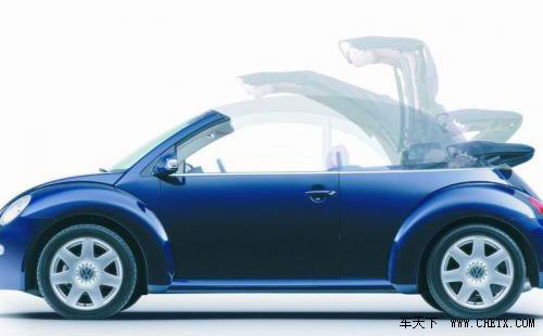 新甲壳虫的敞篷车,更是以一种清新而进取的方式让车主可以享受在阳光之下难以言述的舒适。新甲壳虫敞篷车的活动软顶篷采用了Z字形的三摺式,可以收折在后备箱上方并套上保护罩,通过单手就可以控制打开或收起,利用电子液压系统,可折叠车顶在按键后仅需13秒即可开启或关闭;而且折叠后位置更低,让车后视野宽阔无阻,360度全方位的景观让阳光、蓝天、白云、清风都近在咫尺、触手可及。