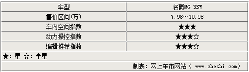 MG 3SW作为上南深入合作后MG名爵推出的第一款In系跨界车,是引领Cross风格的新一代多功能城市轿车。MG 3SW 1.4升车型匹配原装进口五速全铝手动变速器,动力表现上,接近甚至超越其他车型1.6L发动机的水平,功率高达54.4千瓦/升,为同级别最佳水准。
