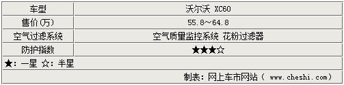 全新沃尔沃XC60的配置表里最引人注目的是城市安全系统(City Safety)——这种独特的安全系统能够帮助司机减轻甚至避免在市内交通拥挤时所经常发生的低速碰撞和追尾事故。如果有可能撞到前面的汽车而司机未能及时做出反应,车辆会自动制动。全新沃尔沃XC60 的目标客户是那些讲求时尚设计品位、注重品牌形象和要求高科技含量的人。在选择汽车时他们也遵循着同样的生活理念,他们需要一个集吸引力和智能化特征于一身、能够满足他们全部需要的车型。