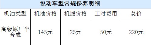 由于是北京现代的“老家”,北京地区的现代4S店数量也是非常多的,但在保养费用上并不因为4S店数量多而相比其他地区便宜。换装发动机前和换装发动机后悦动的保养费用没有任何的变化,更换机油机滤费用约为220元,悦动在购买后享受一次免费保养。