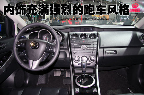 马自达CX-7采用了存黑色内饰设计,展现出这款新车超前的理念和强烈的跑车风格。中央操控面板是由仪表罩的“顶盖“与延伸于整个操控面板上方的“顶盖“构成的独特的双层结构。