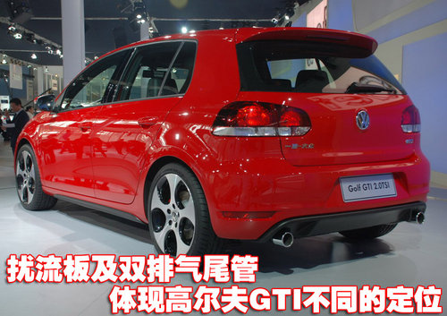 国产高尔夫GTI第六代尾部较普通版车型配备了扰流板,突出视觉效果的同时也提升了整车的性能。此外,经典的“战斧”五幅式设计,也是其与普通版高尔夫得本质区别。