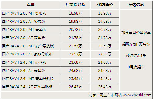 笔者从北京地区经销商处了解,目前丰田RAV4现车供应仍然比较紧张,仅有2.0AT豪华版和2.4AT豪华版有黑色,银灰色现车供应。其他款均需要预订,现在订车的话至少节后才能提车。同时,消费者提现车的话需要加1万元装饰或者现金,装饰可由消费者自主选择。个别店甚至加1.5万元左右。