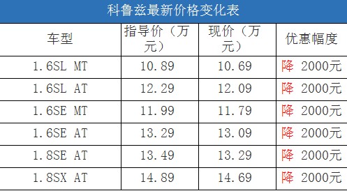 近日,编辑从北京地区综合经销商处了解到,科鲁兹有少量红色、银色和白色现车,购车全系可以优惠2000元现金,这对于该车一直价格稳定车源紧张的情况而言非常令人惊喜。据经销商透露,消费者要想以这个价格提车,需要在店内做购车一条龙服务,其中车辆四项基本保险可以打8.8折(约合4000-5000元左右)。以下是科鲁兹最新价格变化表: