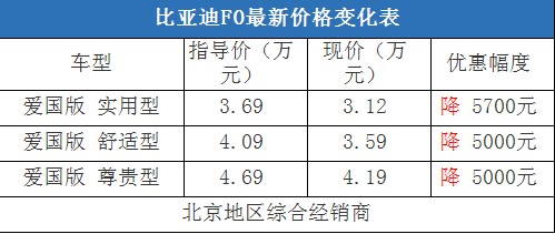 近日,编辑从北京地区比亚迪综合经销商处了解到,近期比亚迪F0的现车比较充足,有红色和银色现车,基本上可以满足消费者在春节前的购车需求。目前购车最高可以优惠5700元现金,但是购车需要在店内做一条龙服务才可以,其中车辆四项基本保险可以打8.5折(约合2200-2500元左右),销售人员透露这个折扣到店还可以再议。以下是比亚迪F0最新价格变化表: