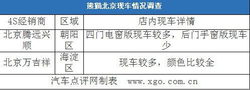 北京地区仅有两家熊猫4S经销商,调查结果显示,熊猫四门电窗版车型现车数量充裕,颜色较全,而后门手窗版车型现车较少,需预定。价格方面,两家4S店的报价比较统一,均表示能现金优惠4000元,购车后可赠送一些装饰品,详情需要到店面谈。
