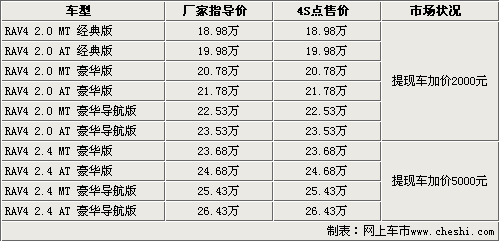 一汽丰田RAV4 提现车加价5000元