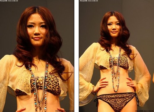 在北京车展的现场我们验证这个质疑确属事实,此次北京车展中孔燕松、孔瑶竹(孔燕松的妹妹)均以模特的身份出现在了克莱斯勒的展台,从我们拍回的近距离照片来看,孔燕松的皮肤并不是太好,让一个有轻度密集物质恐惧症的我看到了有些想起鸡皮疙瘩的感觉,不知道大家看过之后是什么感觉,俗话说照片是三分照、七分P,这里所说的P是指photoshop软件,这样就说明网上流传的孔燕松的照片还是经过处理的照片。