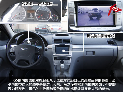 GPS、倒车影像、DV……这些是G5都会拥有的配置,只是G5的液晶显示屏所显示出的影像并不是那么的高端……而且这仪表盘很不像是一个高端品牌所应该有的样式。