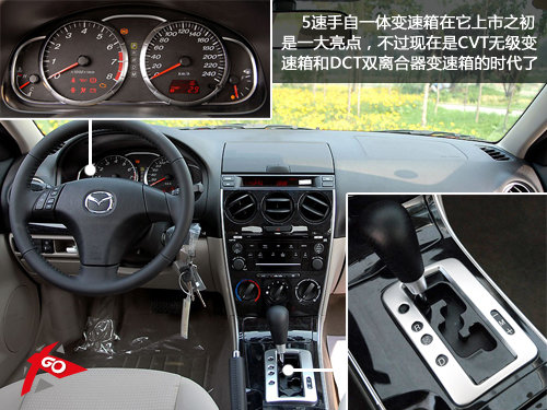 不仅仅外观时尚,马6的内饰设计也同样动感,主打圆形格调的内饰以黑色、米灰色(轿跑版为全黑内饰)为主,让其内部充满运动的感觉,而且这款来自日本爱信的5速手自一体变速箱虽然已然过时,但是毕竟维修、养护费用低呀。