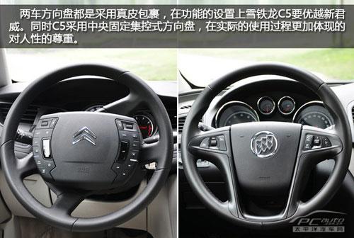 由于此次对比的车型是新君威2.4L 旗舰版和雪铁龙C5 2.3L尊雅型,所以在有些配置上C5要低于新君威,这是可以理解的必定有价格的差别。