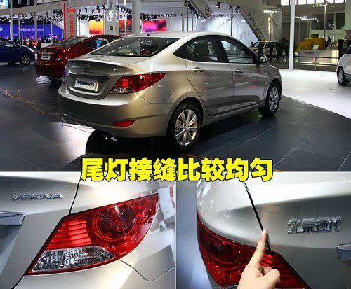 与车头部分相同,北京现代Verna的车尾部分以及大灯周围的接缝同样均匀,整体做工做到了“前后一致”,后行李厢接缝处的缝隙也很适中,将韩系车所具有的细腻体现得淋漓尽致。