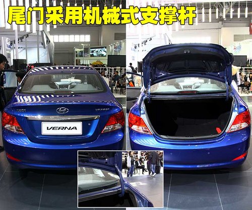北京现代Verna的后行李厢开启比较便捷,而尾门外部开启可使用钥匙实现操控,机械支撑杆设计开启使很轻松。