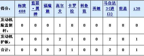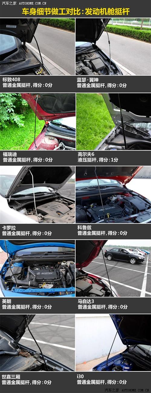 在这一环节的对比中,高尔夫6凭借着液压的发动机舱盖挺杆和大面积的发动机护板而保持领先,进口的马自达3两厢在发动机护板上也不错,但其他一些车型其实则没有大的区别。