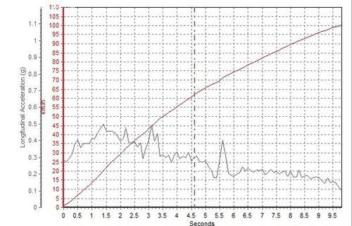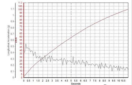 轩逸的0-100km/h加速时间为10.90秒,另外我们从加速曲线图中也能看到,轩逸的加速力度异常平顺