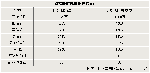 从车身尺寸来看,新凯越的三围是:4515mm*1725mm*1445mm,B50的长宽高是:4600mm*1785mm*1435mm。在长、宽两个项目上,身材更加魁梧的B50优势相对明显,为车内腿部空间和横向舒展性的优良感受奠定基础;车身高度上新凯越略占优势,乘客头部的空间相对由优势。