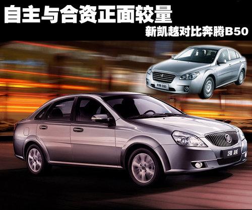 自主品牌在国内市场的日子现在越来越风光,近几年更是带来了一股抢购国货的热潮,市场的整体局势也从原来倾向合资的一边倒,转换成了两股势力分庭抗礼,在消费者心中的天平也日渐趋于平衡。紧凑级家用车是商家必定不能放过的一块重要的蛋糕,自主与合资品牌的对抗也在这个范畴内演化、升级。今天的对比合资品牌排除老牌劲旅——通用别克新凯越,自主品牌则是由奔腾品牌主打车型B50。