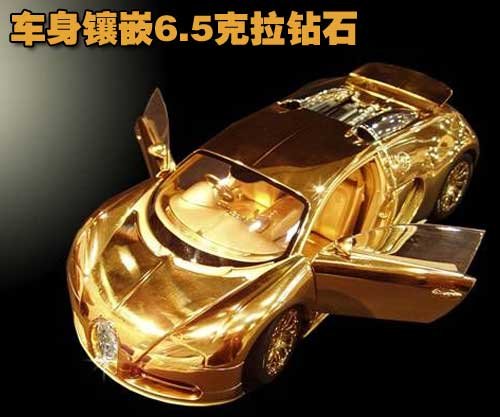 这个1:18的车模由于黄金的材质显得金光灿灿,而放出夺目光彩的则是6.5克拉的真钻,不知道这个大家伙拿到手里会是什么感觉。