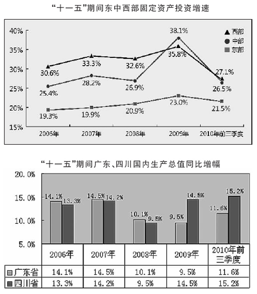 “十一五”期间,国家促进区域协调发展的政策力度前所未有,各地对地区发展战略研究与实施的重视程度前所未有,区域经济发展取得的成绩也前所未有。特别是随着一系列区域规划和政策文件的密集出台,东部地区的发展支撑带布局进一步完善,中西部地区新的增长极不断涌现,中国区域经济版图日趋清晰,沿海与内地竞相奋进、良性互动的发展格局基本形成。