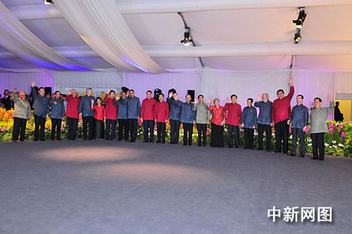 中新网11月15日电 出席观看《新加坡之夜》的APEC各成员领导人14日晚拍摄了合影,刚刚抵达新加坡的美国总统奥巴马也参加了合影。