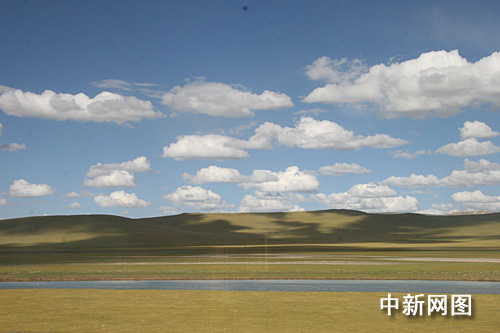 地上草原上有几块黑色的区域,这是天上云朵在地面上的投影,可见天之清澈和天地相接的甚近。