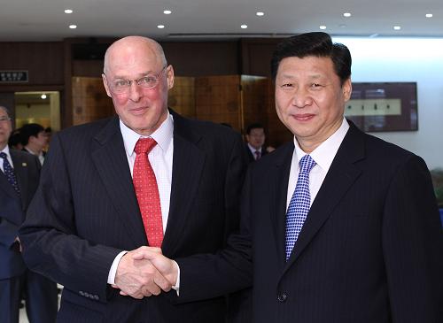 在会见保尔森时,习近平说,中美都是世界上有重要影响的国家。在推动世界经济复苏和可持续增长、处理国际和地区热点问题以及维护世界和平与安全等方面,中美两国拥有广泛的共同利益,肩负着重要责任。中方一贯高度重视中美关系,愿与美方共同努力,尊重彼此核心利益和重大关切,妥善处理分歧和敏感问题,加强各领域对话、交流与合作,推动中美关系沿着积极合作全面的轨道向前发展。习近平深入阐述了中方在中美经贸关系、人民币汇率等问题上的原则立场,期待保尔森继续发挥影响力,为促进中美在经济金融领域的对话合作和后国际金融危机时期两国经济关系健康稳定发展发挥积极作用。