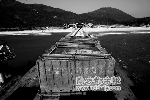 昨日下午5时,临时码头的警戒线范围不断扩大,延伸到距离岸边200米的位置。冯绍文带着几名水晶宫的施工人员打算到驳船上了解情况,但被一名带袖标的打捞人员拒绝。冯绍文只好站在码头边,望着百米外的沉箱。
