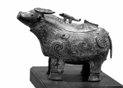 一件春秋牺觥青铜器仿制品代表上海博物馆的心意,一幅清院本《清明上河图》复制品象征了台北故宫博物院的浓情,这是昨天台北故宫博物院院长周功鑫一行来到上博参观,双方互赠的礼物。