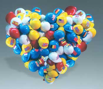 构思不同、表达多样的100多件雕塑,从不同角度展现了地震中人性的坚强与抗争。如燕山大学艺术学院教师吴新的浮雕作品《我们的毕业照》,展现的是一张老师缺席的毕业照,作者为地震中老师的牺牲精神所感动,并期望将这种感动传达给观众。西安美术学院雕塑系教授周晓东的作品《茂汶苹果》,雕刻了一个特殊的苹果,裂了口的苹果上描绘了重建后的家园图。他说,是四川人都熟知的汶川和茂县的土特产苹果给了他表达的冲动。亲自去过灾区的周晓东深深地体会到地震中人们的心理障碍,“许多人根本无法面对亲人的忽然离去。”所以他更愿意用乐观的苹果去感染人的情绪,让他们感受到生的希望,因为,比自然灾难更可怕的是人的绝望。天津美术学院学生韩帅、宋晓燕、李鹏共同创作的作品《关爱》,将贴有各国国旗的五彩安全帽组合成心形,既使观众重温了国际救援爱心行动带来的希望与感动,也不禁为“80后”艺术家的巧妙构思而叫好。