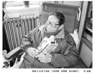 丁聪老人是26日11时在医院飘然远行的。丁聪的夫人沈峻女士在电话中沉静地证实了这个消息:“谢谢你们的关心,但我们家人尊重丁先生的愿望,不设灵堂,不举行一切追悼和纪念仪式。他只想安安静静地离开。”