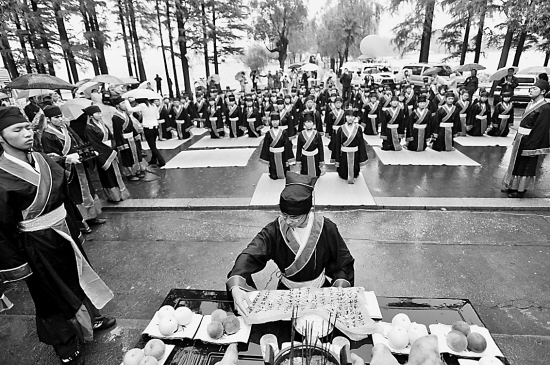 “弟子规,圣人训,首孝悌,次谨信……”十几个孩子穿着汉服,正襟危坐,晃着脑袋随老师大声诵读《弟子规》,教师墙上挂有孔子画像,墙角的录音机里流淌出舒缓的古曲。这是目前许多“国学启蒙馆”日常授课的情形。