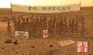 网友继续为原本无意义的水帖“增加”意义,带有“贾君鹏”字样的PS图片相继诞生,有网友在易中天《百家讲坛》的照片下方写,“大家好,我是贾君鹏的班主任”,也有网友在一群外星人举旗的照片中PS上“贾君鹏你妈妈喊你回家吃饭”的标识,或者让这几个字出现在《新闻联播》的字幕中,贾君鹏成了无所不在的符号,终极的指向是一场集体无意识的搞笑和乐子。