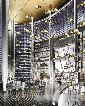 这件作品将包括196个青铜、黄铜,及镀金材质的打击乐器钹,每一个钹的材料都来自不同的国家,它们合在一起会发出令人惊讶的柔和水声,那声音像是从天花板上滴下来的水滴的声音。 (文文)