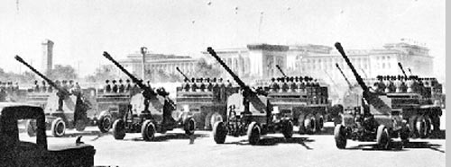这个心愿直到1957年的国庆阅兵式才实现。那天,国产的歼-5歼击机编队飞过天安门广场。它是高亚音速歼击机,最大时速1145千米,最大航程1850千米,实用升限16600米,装有一门37毫米和两门23毫米航炮,其部分技术性能指标不逊于美军“佩刀式”战斗机。