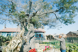 “这是一棵神树,据说有400多年的历史!”一位叫宋文臣的银发老者蹒跚着走到院中央,一面抚摸着大树,一面连声发出感叹,“听老辈人说,先有这棵树,后有山后村,它比我太爷爷的年龄还大呢!吕正操小时候,就经常在这棵树下玩耍。吕正操晚年时,他几乎每年都派人来给大树照一张照片,拿回去做纪念。”