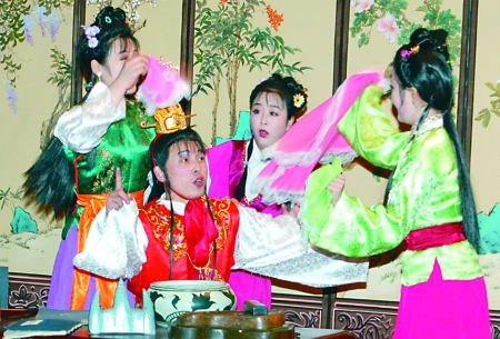 记者:朝鲜版的歌舞剧《红楼梦》一共六场10景,分为上下半场,因为演出的时间比较长,大约三个多小时,所以观众在观看演出的过程当中会有十到十五分钟的休息时间。具体来说,朝鲜版的歌舞剧《红楼梦》剧情是以贾宝玉和林黛玉的爱情为主线,以黛玉的香消玉殒,宝玉的愤然离世变得更具悲剧性,剧中对细节的处理和对人物感情的把握基本上尊重了原著。剧中的唱段全部采用朝鲜民谣的唱法,由女生旁唱、男生旁唱和混合旁唱等等多种旁唱的方式,唱腔圆润自然,真实的描绘出了剧中人物的内心世界。同时字幕语言在引用了《红楼梦》原著的基础上还进行了一些修改,这样更加感人、优美了。