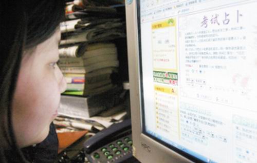 在搜索网站上输入“占卜”,一下子就搜出10600000个网页,不但测算星座运程的网站铺天盖地,看风水、看手相、排八字、解梦等网站也是一应俱全,有的还提供各种算命软件下载。记者随意打开一个网页,发现里面内容颇丰,而且占卜类别十分详细,诸如开夜车获得好成绩的最佳风水方位、录取第一志愿的最佳风水方位、不再迟到的最佳风水方位、减少上课被老师点名的最佳风水方位、成为长者及老师疼爱对象的最佳风水方位、班上人气宠儿的最佳风水方位等各色占卜一应俱全。据了解,此类网站有不少都是收费的,若想测试,需通过手机交纳一定费用。