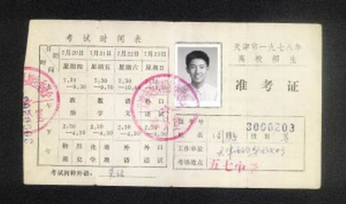 泛黄的卡片上,“天津市一九七八年高校招生准考证”几个黑体字清晰依旧。周鹏告诉记者,在那个年代,对于普通的农家子弟而言,若想改变命运,最有效的方式就是高考。